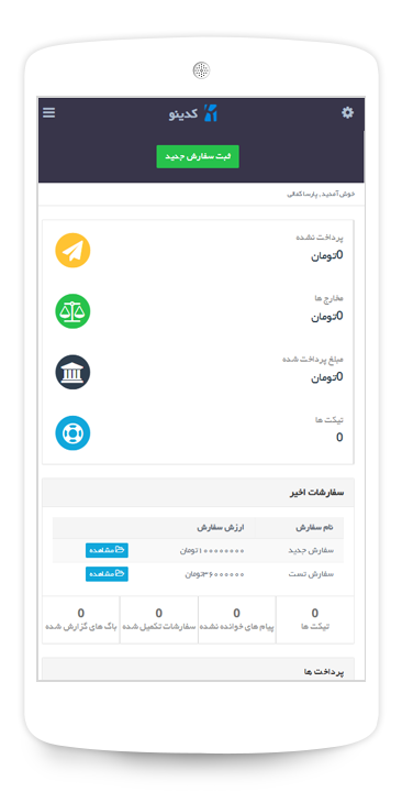 در کدینو هزینه سفارش به صورت پیش فاکتور و فاکتور نهایی قابل پرداخت است